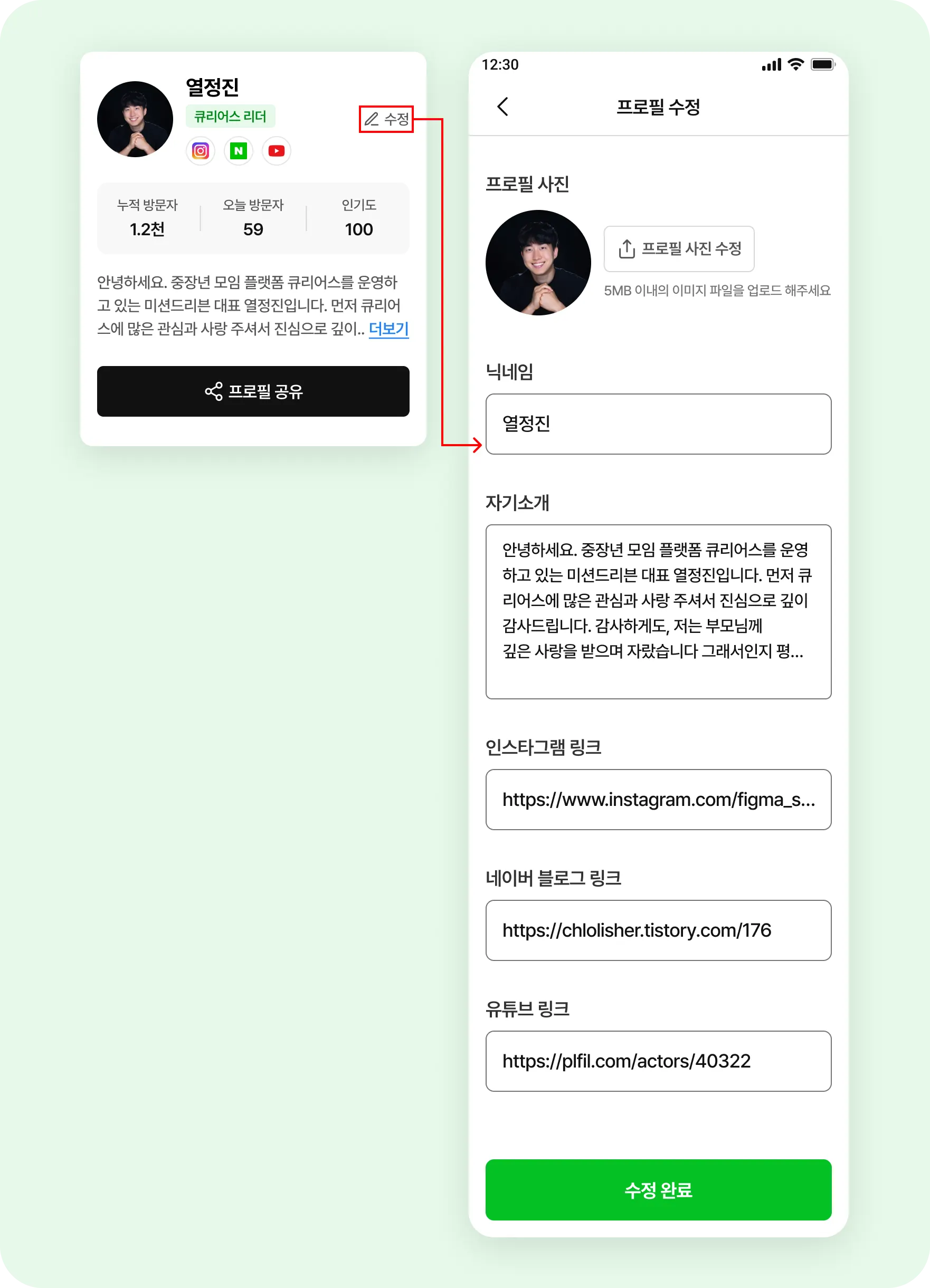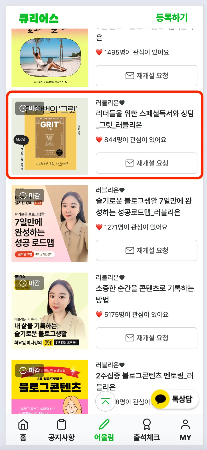 내가 만든 어울림의 페이지로 들어가세요.