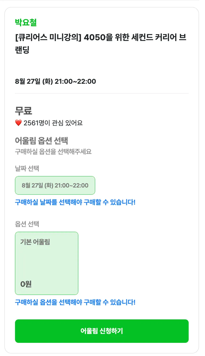 할인 적용된 가격을 확인하고 어울림 참여하면 끝!
