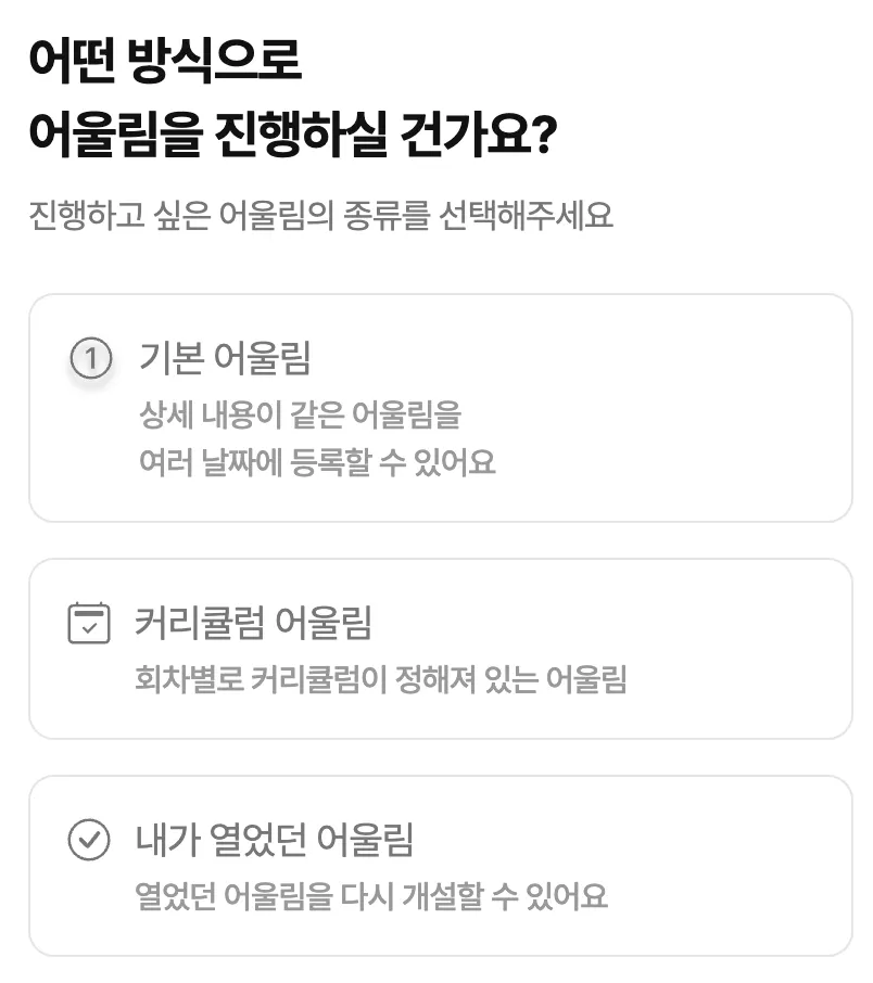2. 커리큘럼 어울림은 여러 회차로 구성된 어울림을 개설할 수 있어요.