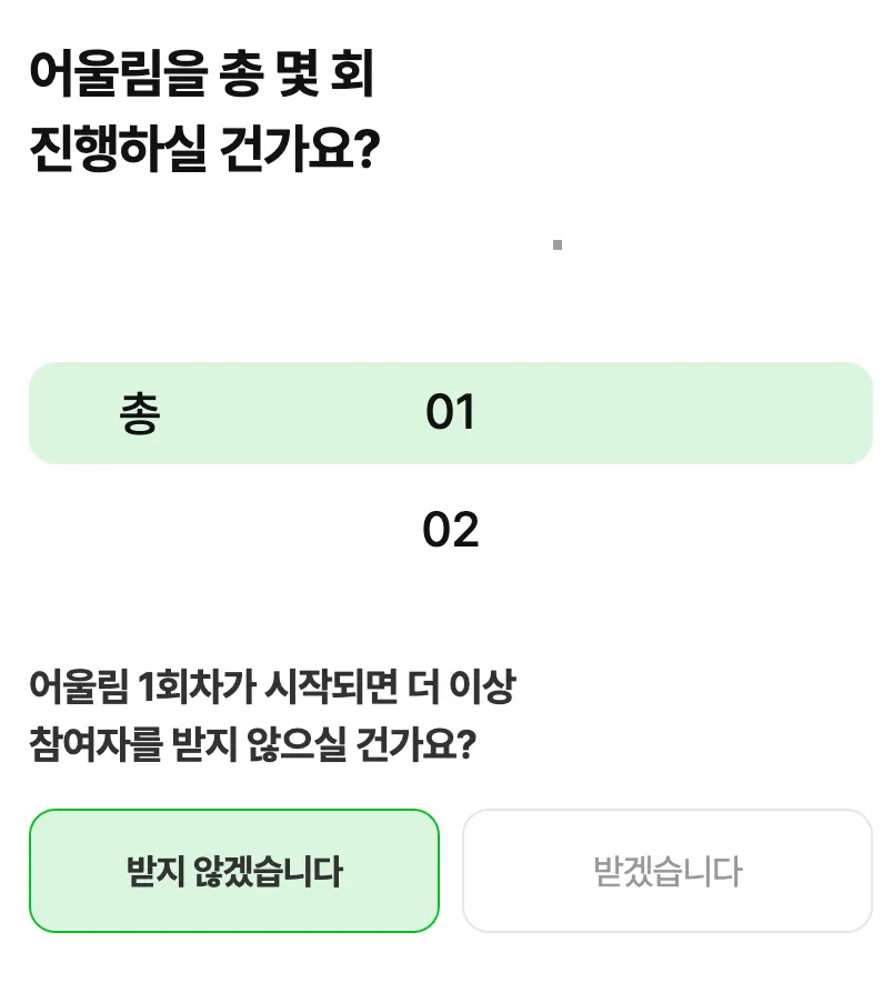 또한 인원 제한을 걸거나 내가 열었던 어울림 내용을 쉽게 불러올 수도 있어요.