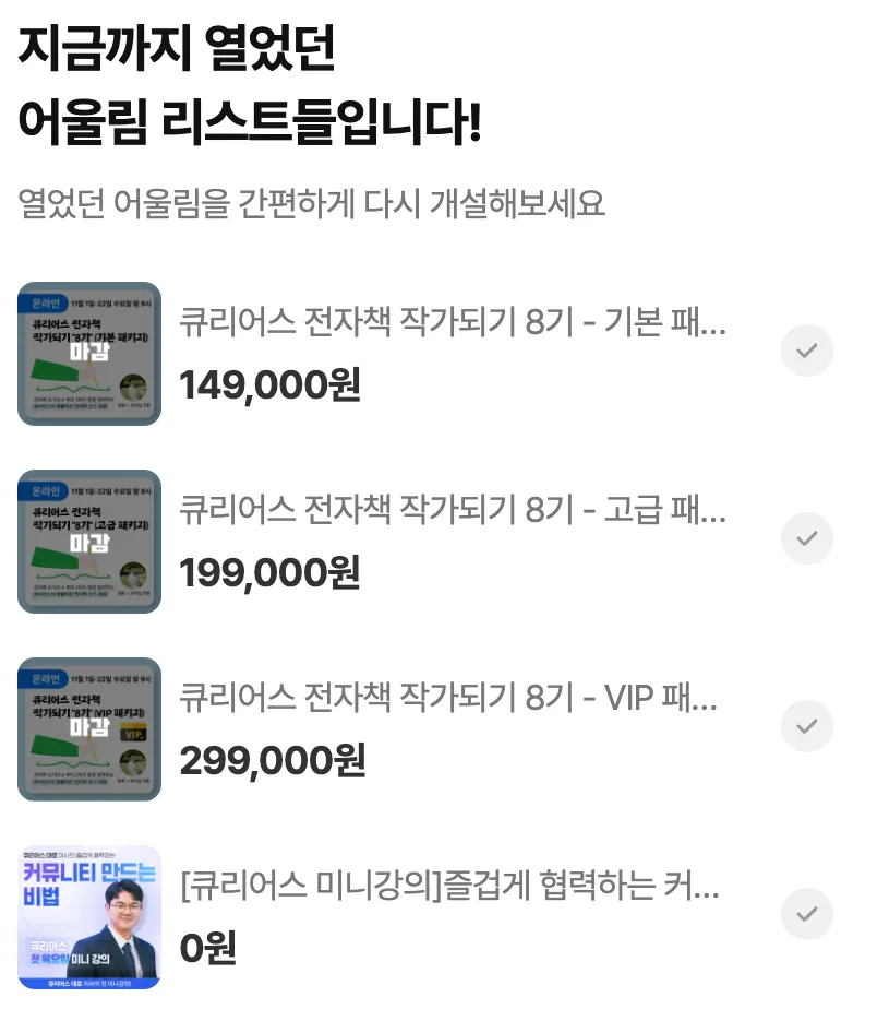내가 열었던 어울림을 쉽게 불러오세요. (대로의 예시입니다!)