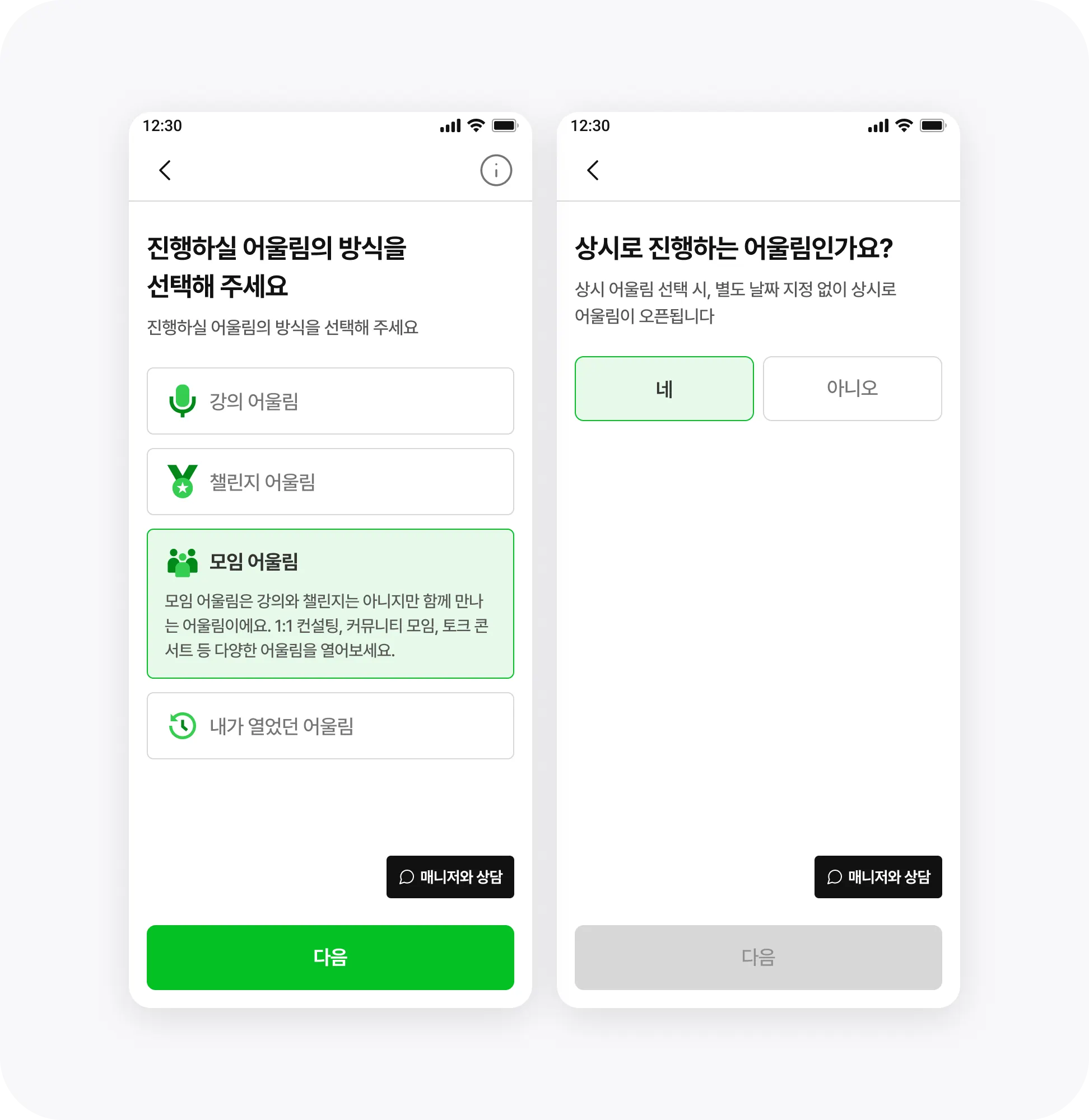이제는 강의/챌린지/모임 3가지가 분리되어서 내가 원하는 유형의 어울림을 찾을 수 있어요.