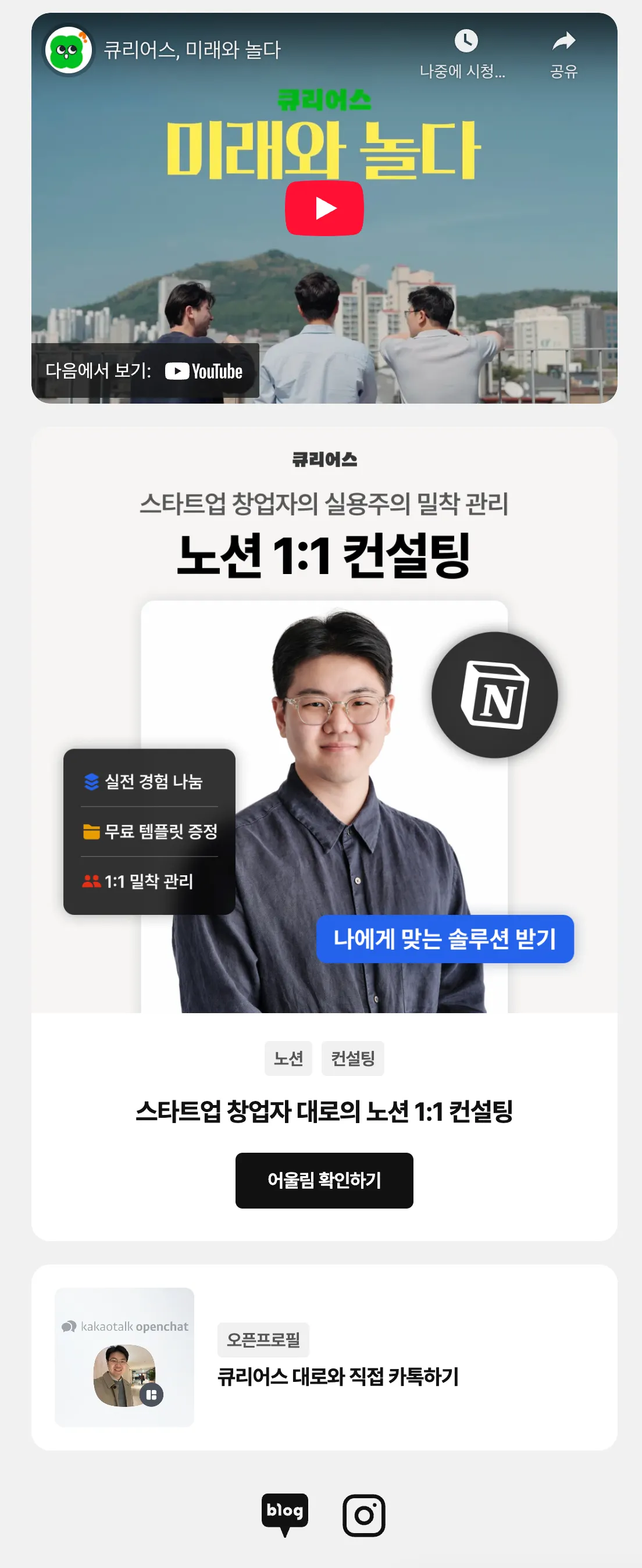 이제 큐리어스의 크리에이터 페이지를 나의 SNS에 링크로 탑재해보세요.