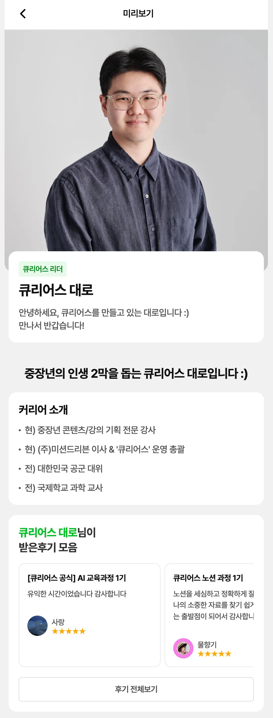 리더님의 큐리어스 활동과 후기를 한 눈에 보여주고
